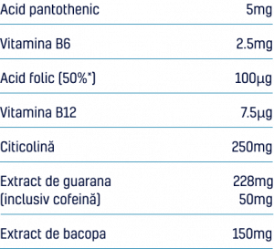 Help4Brain® conține cofeină (50 mg / comprimat), nefiind recomandat copiilor și femeilor însărcinate.